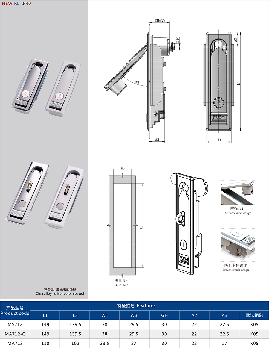 | PRODUCT NAME | MS712 Bright Chrome Plated Coated Industrial Refrigerator Lock |