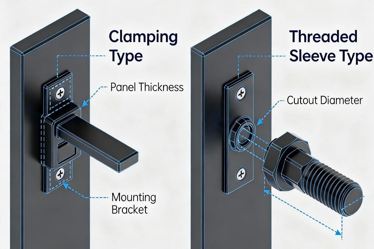 - Mounting Structure and Panel Compatibility: This is paramount. Determine if a “clamp-style” mount (for doors within a specific thickness range) or a “threaded bushing” mount (for thicker panels) is needed. Precisely measure door thickness, cutout dimensions, and tooling requirements.